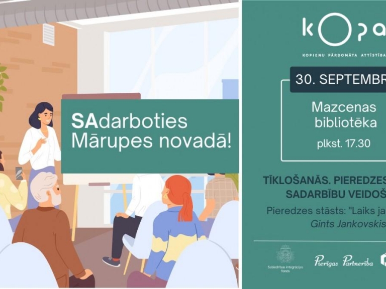 Aktivitāte notiek LEADER sadarbības projekta “(sa)DARBĪBA: uzņēmēju sadarbības ekosistēmas stiprināšana” (Nr. 23-00-A019.332-000003), ko īsteno biedrība “Partnerība Daugavkrasts” sadarbībā ar piecām vietējās rīcības grupām - biedrībām “Pierīgas partnerība", “Jūras zeme”, “Ropažu Garkalnes partnerība”, “Stopiņu Salaspils Partnerība” un “Publisko un privāto partnerattiecību biedrība "Zied zeme" Latvijas Lauku attīstības programmas 2014. – 2020.gadam apakšpasākuma „Starpteritoriālā un starpvalstu sadarbība” ietvaros. Vairāk par projektu: https://ej.uz/sa_DARBIBA